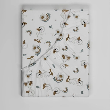 Prześcieradło z gumką do łóżeczka 90x190 bawełniane | 415zol | biało żółta | polne kwiaty