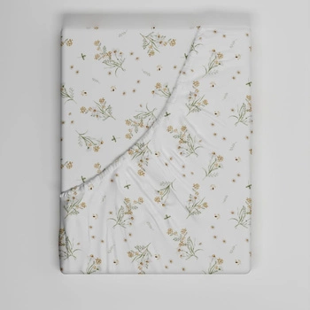 Prześcieradło z gumką do łóżeczka 90x180 bawełniane | 121rum | biało żółte | kwiaty rumianki