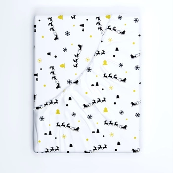 Prześcieradło z gumką do łóżeczka 90x160 bawełniane | 327bzo | białe | świąteczna Mikołaj