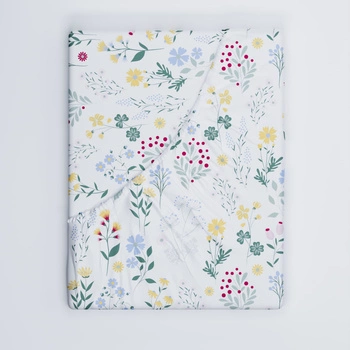 Prześcieradło z gumką do łóżeczka 90x180 bawełniane | 129blu | białe | polne kwiaty