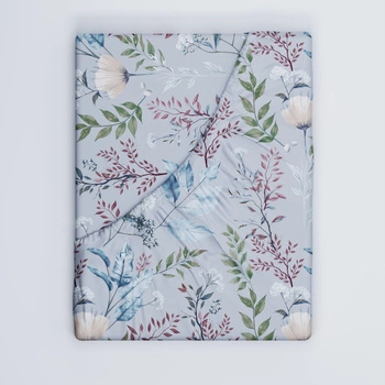 Prześcieradło z gumką do łóżeczka 90x190 bawełniane | 175sza | szare | kwiaty liście