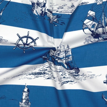 Prześcieradło z gumką do łóżeczka 90x180 bawełniane | 065nie | biało niebieska | wzór marynarski
