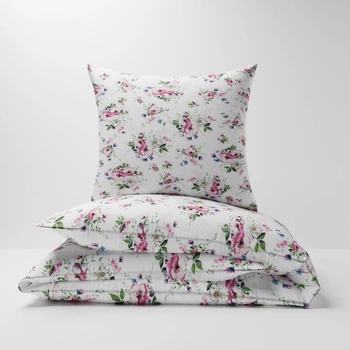 Pościel z kory 140x200 + poszewka na poduszkę 70x80 | 348biały | biała | kwiaty bratki