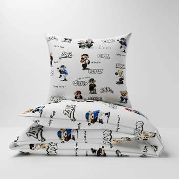 Pościel bawełniana 200x220 + poszewki na poduszkę 2*70x80 | 062bia | biała | skatepark