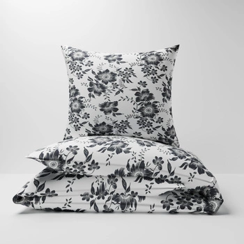Pościel dla dziecka bawełniana 100x135 + poszewka na poduszkę 40x60 | 116bsz | biało szara | kwiaty