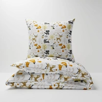 Pościel dla dziecka bawełniana 100x135 + poszewka na poduszkę 40x60 | 014jeleń | biało pomarańczowa | zwierzątka leśne