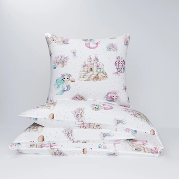 Pościel dla dziecka bawełniana 140x160 + poszewka na poduszkę 50x60 | 436syr | biało pastelowa | syrenki