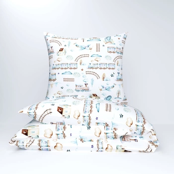 Pościel dla dziecka bawełniana 140x160 + poszewka na poduszkę 50x60 | 303n-b | biała | ciuchcie pociagi