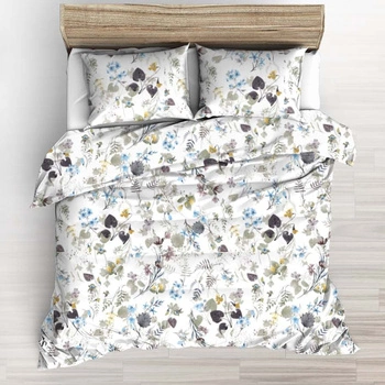 Pościel bawełniana 200x220 + poszewki na poduszkę 2*70x80 | 021wrz | biała | kwiaty