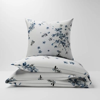 Pościel bawełniana 200x220 + poszewki na poduszkę 2*70x80 | 237cha | biało niebieska | kwiaty
