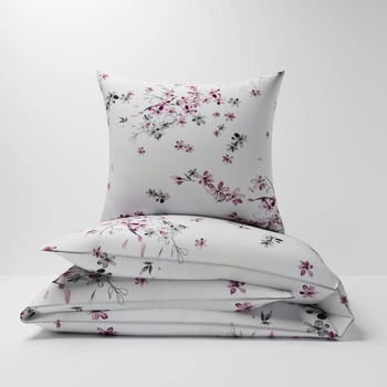 Pościel bawełniana 200x220 + poszewki na poduszkę 2*70x80 | 237róż | biało różowa | kwiaty