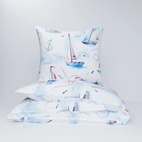 Pościel bawełniana 200x220 + poszewki na poduszkę 2*70x80 | 128nowe | biała | żagłowki morska