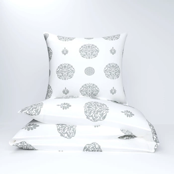 Pościel bawełniana 200x220 + poszewki na poduszkę 2*70x80 | 388bsz | biało szara | ornament