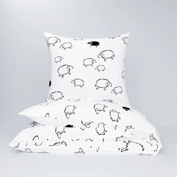 Pościel dla dziecka bawełniana 120x180 + poszewka na poduszkę 70x80 | 055bia | biało czarna | baranki