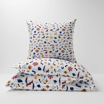 Pościel dla dziecka bawełniana 120x180 + poszewka na poduszkę 70x80 | 059bia | biała | plażowanie
