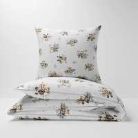 Pościel dla dziecka bawełniana 120x160 + poszewka na poduszkę 50x60 | 303Sbe | biało beżowa | misie samoloty