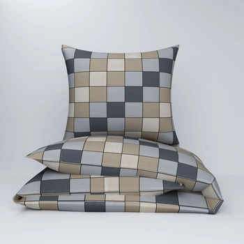 Pościel z kory 140x200 + poszewka na poduszkę 70x80 | 309B3D | beżowa | krata 3D