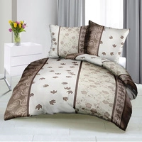 Pościel bawełniana 160x200 + poszewki na poduszkę 2*70x80 | 068brąz | biało brązowa | kwiaty