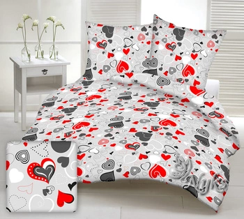 Pościel dla dziecka bawełniana 100x140 + poszewka na poduszkę 40x60 | 071czer | szaro czerwona | serca walentynki
