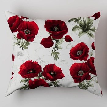 Poszewka bawełniana na poduszkę 50x60 | 237mak | biało czerwona | kwiaty maki