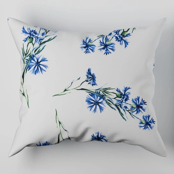Poszewka bawełniana na jaśka 40x40 | 111cha | biało niebieska | kwiaty chabry