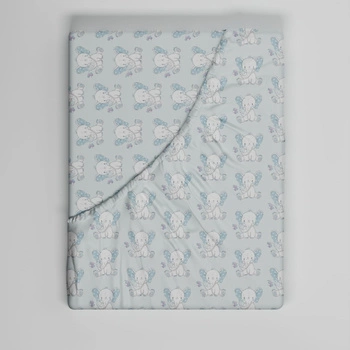 Prześcieradło z gumką do łóżeczka 60x120 bawełniane | 314nie | niebieskie | słonie