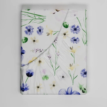 Prześcieradło z gumką do łóżeczka 90x180 bawełniane | 348bia | białe | kwiaty bratki