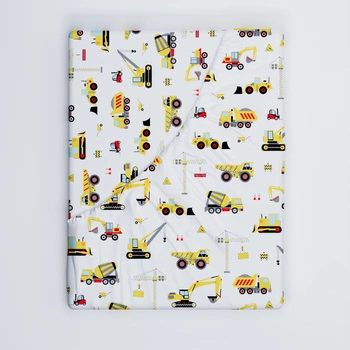 Prześcieradło z gumką do łóżeczka 90x200 bawełniane | 404bzo | biało żółte | koparki