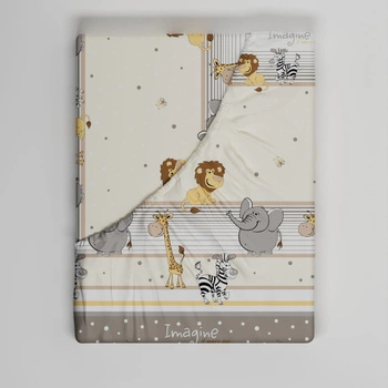 Prześcieradło z gumką do łóżeczka 80x200 bawełniane | 104bez | beżowe | zwierzątka safari