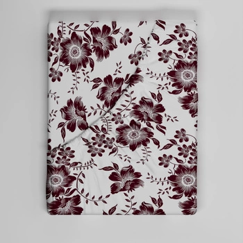 Prześcieradło z gumką do łóżeczka 90x190 bawełniane | 116b-b | biało bordowe | kwiaty
