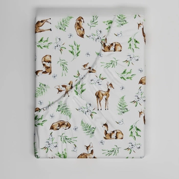 Prześcieradło z gumką do łóżeczka 80x160 bawełniane | 020sarna | białe | sarenka
