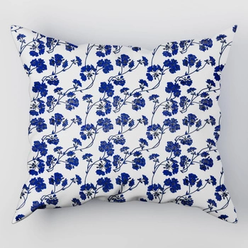 Poszewka bawełniana na poduszkę 50x60 | 195b-g | biało granatowa | kwiaty