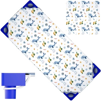 Prześcieradło z gumką do łóżeczka 40x90 bawełniane | 044ctu | niebiesko zielone | liście egzotyczne