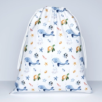 Worek na pościel do przedszkola żłobka | 044ctu | niebiesko zielona | liście egzotyczne