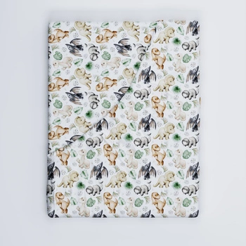 Prześcieradło z gumką do łóżeczka 70x160 bawełniane | 016Sko | biało zielone | dinozaury