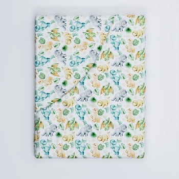 Prześcieradło z gumką do łóżeczka 90x190 bawełniane | 016zie | biało niebieskie | dinozaury