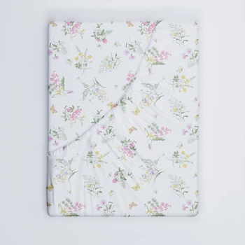 Prześcieradło z gumką do łóżeczka 90x190 bawełniane | 121kon | białe | polne kwiaty