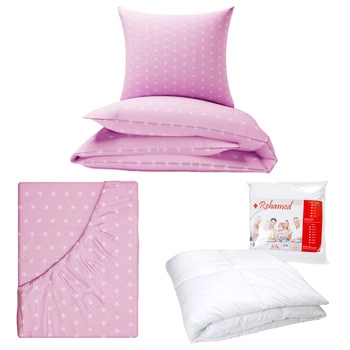 Zestaw pościeli 100x160 + 40x60 + prześcieradło we wzorze 80x160 | 401róż | różowa | gwiazdy