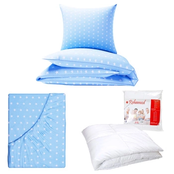 Zestaw pościeli 100x160 + 40x60 + prześcieradło we wzorze 80x160 | 401nieb | niebieska | gwiazdy