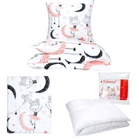 Zestaw pościeli 100x160 + 50x60 + prześcieradło we wzorze 80x160 | 502bia | biała | króliczki