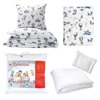 Zestaw pościeli 100x160 + 50x60 + prześcieradło we wzorze 80x160 | 081b-n | biało niebieska | samoloty balony