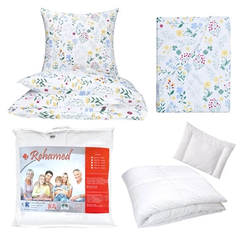 Zestaw pościeli 100x160 + 50x60 + prześcieradło we wzorze 80x160 | 129blu | biała | polne kwiaty