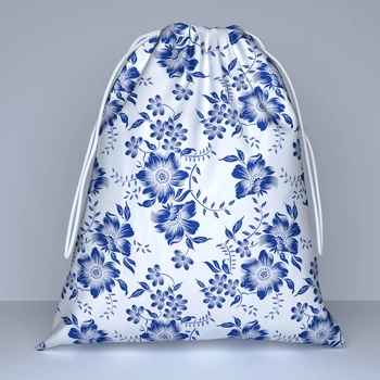 Worek na pościel do przedszkola żłobka | 116bgr | biało granatowy | kwiaty lilie