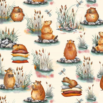 Prześcieradło z gumką do łóżeczka 90x180 bawełniane | 152kap | ecri | zwierzątka kapibary