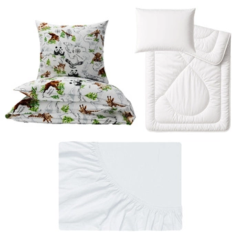 Zestaw pościeli 100x160 + 50x60 + prześcieradło jersey 80x160 | 198map | biała | kontynenty zwierzęta