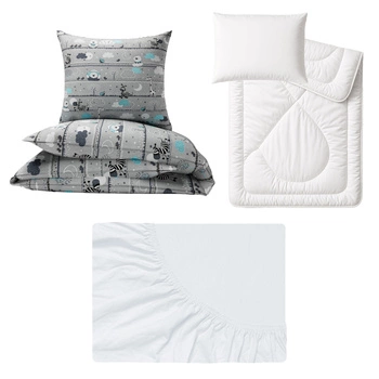 Zestaw pościeli 100x160 + 50x60 + prześcieradło jersey 80x160 | 198Pmi | szaro miętowa | misie panda
