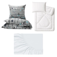 Zestaw pościeli 100x160 + 50x60 + prześcieradło jersey 80x160 | 202czr | czarna | kosmos