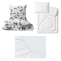 Zestaw pościeli 100x160 + 50x60 + prześcieradło jersey 80x160 | 138nie | niebieska | safari auta