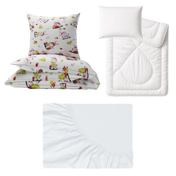 Zestaw pościeli 100x160 + 50x60 + prześcieradło jersey 80x160 | 228Sbi | biała | zające świąteczne
