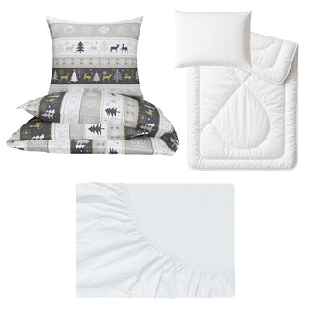 Zestaw pościeli 100x160 + 50x60 + prześcieradło jersey 80x160 | 446beż | grafitowo beżowa | świąteczna renifery